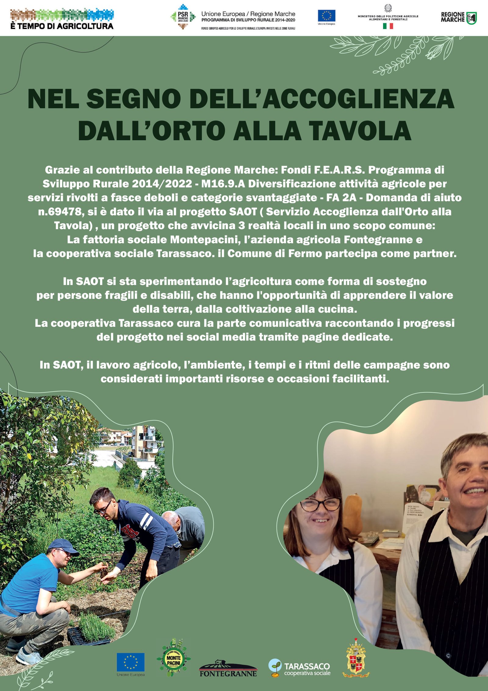 Attraverso le immagini dei bambini ospiti del centro estivo il documentario racconta la storia della Fattoria sociale Montepacini nel comune di Fermo (Marche), incentrata sulla sostenibilità, la valorizzazione della biodiversità e della piccola ruralità del “buono, pulito e giusto” per dimostrare che è possibile coniugare inclusione ed accoglienza di persone disabili, richiedenti asilo, soggetti fragili e svantaggiati con la valenza economica di un’agricoltura sociale radicata nella comunità territoriale.